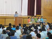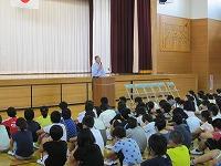 しました。児童のめあての発表のあと、校長先生のお話がありました。