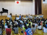 全校生での国歌斉唱の後、各学年代表の児童が2