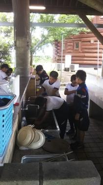 野外調理の後、アスレチックで楽しく遊んでいます。