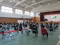 新型コロナウィルス感染予防のため、校内放送で各教室にて実施しました。