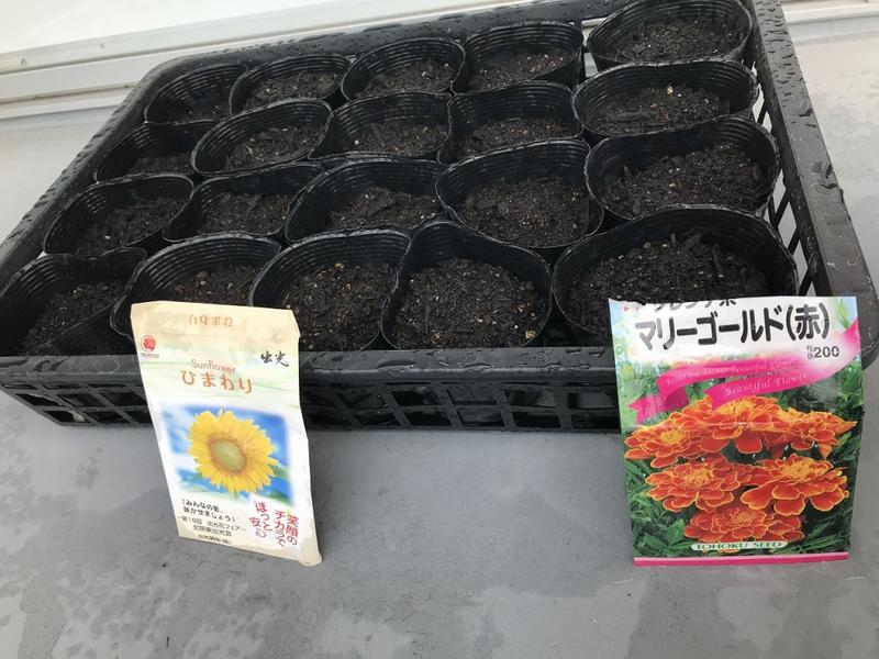 学校ではそのほかにもヒマワリとマリーゴールドをそだててかんさつしていきます。