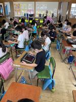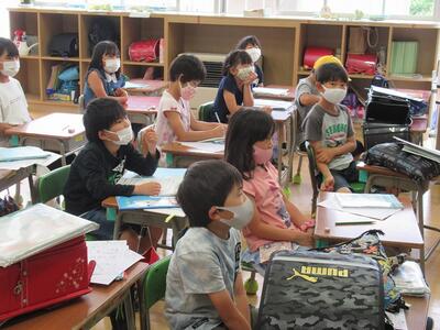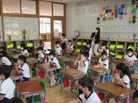 余談ですが、朝の会を始めた他のクラスからは、「県民の歌」が聞こえてきました。