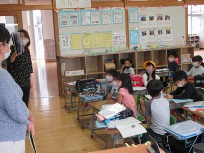 きょうは5年生教室で行いました。