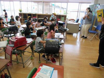 子供たちは、話の内容をよく理解しながら、日本語で答えたり英語で答えたりいていました。