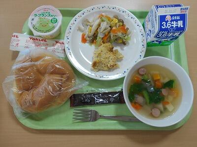 今日から12日まで、読書週間コラボ給食となります。図書室前に、給食とコラボした本と給食の写真を展示しています。