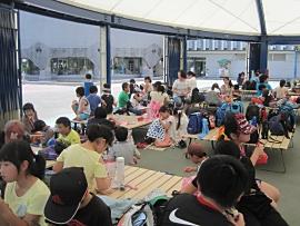 青空がまぶしいけど、みんなで輪になって・・・楽しいね!
