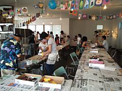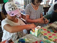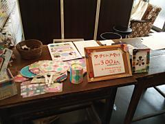 オリジナルのうちわや写真たてを参加者の方は楽しそうに作っていました。また、とちぎ手仕事プロジェクトFukuFukuとして、福島の復興を願って、福島の方々が作成した小物を販売し、人々と様々な面でつながろうという活動を支援するNPOの方もお見えになっていました。