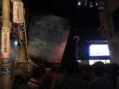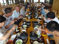 皆さん食べながら一定の方向を見ていますが、何を見ているのかというと