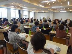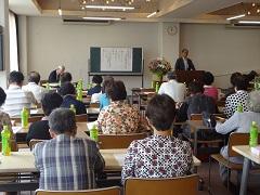 当日は13:00からと昼食後間もなくの開催でしたが、60名の会員さんが出席してくださいました。また、役員さんは午前中から来て会場の準備や総会中の進行などにもご協力をいただきました。