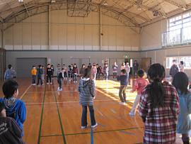 12月27日に3クラブ交流会がありました。約170名の子ども達が集まりました。なかよしからは、60名参加をして、生涯学習センターの庭ではサッカー、体育館ではドッジボール、室内では新聞紙を使ったゲームなどを楽しみ、昼食はカレーライスをお腹いっぱい食べました。午後は、○×クイズで、交流を図りました。