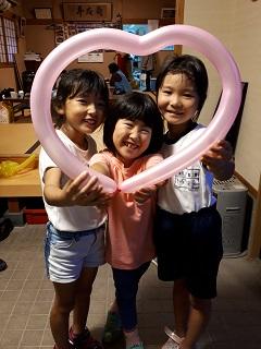 お料理をしている間に、続々と子どもたちがご来店♪本日は初めて来たという方もいらっしゃって、賑わいがありました。にっこりスタッフと一緒におなじみのバルーンアートやカードゲームをして遊びました。