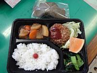 キャベツハンバーグ・大根と人参のとろみ煮・小松菜の生姜醤油和え・柏餅(端午の節句でお配りしました♪)