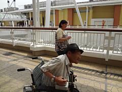 でも、せっかくなので外をお散歩することになりました。ホテルが丘の上にあるので、直○さんの車椅子で坂を降りるのにはかなり急で、距離が長い!しかし、事務局として、安全にゆっくりと車椅子をしっかり持ちながら降りました!!汗だくでした!!