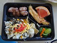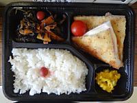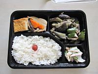 献立は、五目ごはん・鮭の西京焼き・盆団子・漬物、でした。1週間はやいですが、お盆前ということでお団子をいれてみました☆
