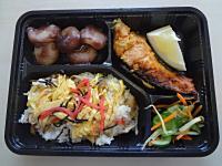 五目ごはん、鮭の西京焼、盆団子、漬物