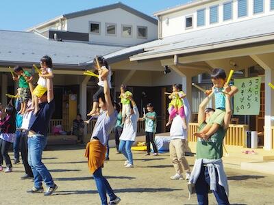 最後にのびのびぐみ、こころぐみ親子全員で踊った「ワッショイ!」