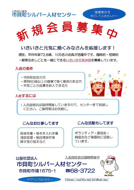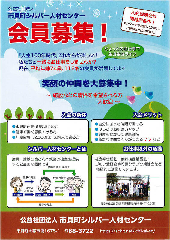 問い合わせ先 市貝町シルバー人材センター事務局 68-3722