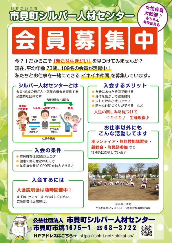 市貝町シルバー人材センターでは、会員を随時募集しています。