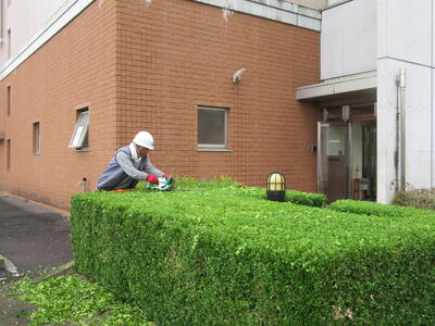 インターロッキングの除草、敷地内の草刈りや植木手入れ等をして、敷地内を綺麗にしました。【 参加者 44名 】