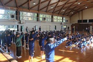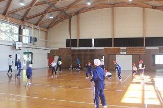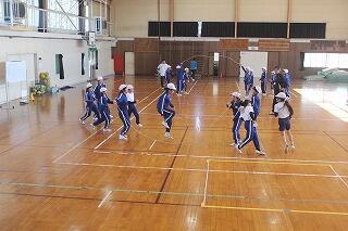縄跳びによる体つくり、ボールを使っての投力向上の授業を行っていただきました。