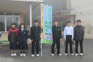 朝の登校時に、市貝中学校生徒によるあいさつ運動を行いました。