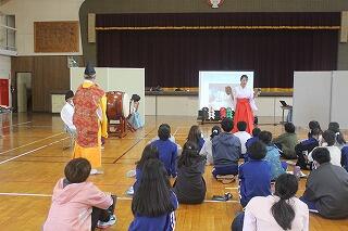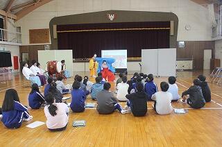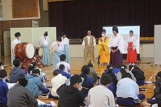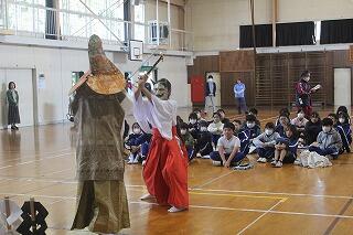 迫力ある演技に、児童は真剣な眼差しで見入ってました。