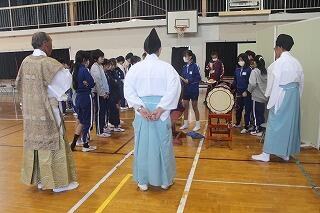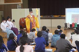 業間から3校時にかけて、杉山太々岩戸神楽保存会の皆様による太々神楽を