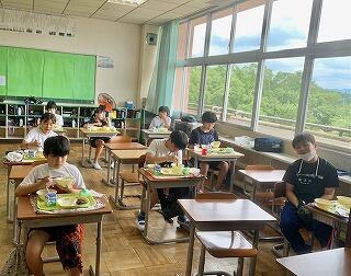 今日から3日間、市貝中学校2年生(社会体験)8人が、こども達と一緒に給食を食べます