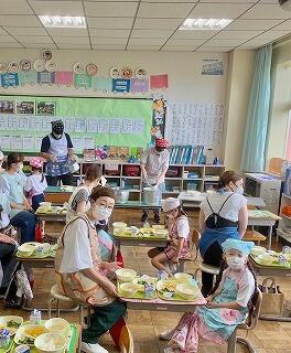 今日はおうちの人たちと一緒に楽しい給食になりました