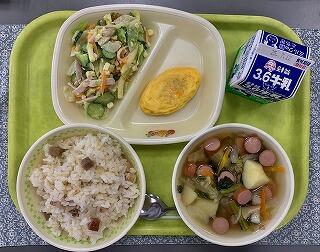 今日の「さつま芋ごはん」に使用している“さつまいも”は、赤羽小学校の畑でとれた“さつま芋”です”
