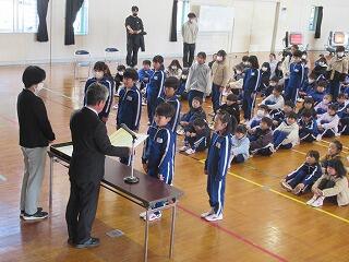 した児童には、賞状を渡します。