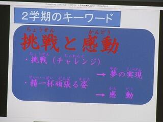 校長の話では、『挑戦』と『感動』の2学期にしてほしいという話をしました。