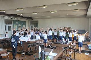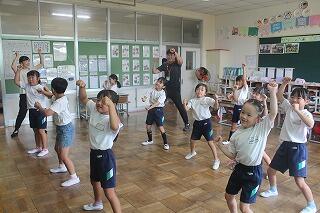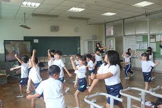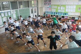 体を動かしました。(教員も元気いっぱい踊りました。)