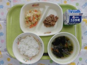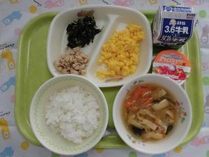 牛乳には、骨や歯を丈夫にするカルシウムや、筋肉を作るたんぱく質など、たくさんの栄養が入っています。今日は牛乳のほかにもミルクスープが出ています。