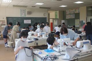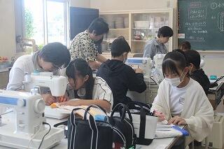 本日の6年生の家庭科では、ミシンを使ってトートバックづくり