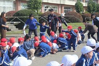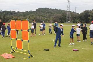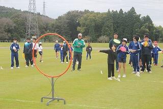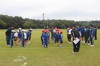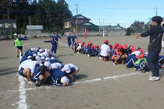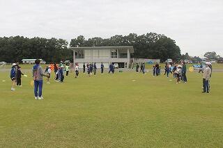本日、市貝町小中連携児童生徒交流会が中央公民館芝生グランドで行われました。
