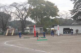 毎朝、保健運動委員会の児童の皆さんが、グランドならし、ライン引き、石拾いなど、