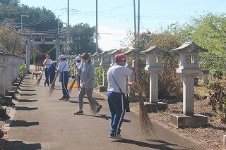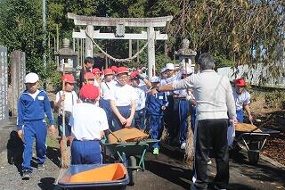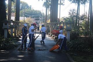 本日の3校時に、5年生が全校ボランティアとして、鹿島神社の掃き掃除と