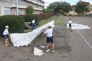 向けてのテント張りや机・椅子の準備をしてくれました。
