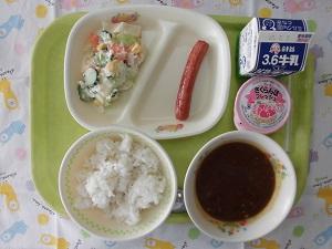 パンに合うように,今まで主菜で出なかったメンチカツを選びました。