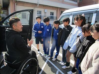 車椅子に実際に乗ったり、車椅子の方が運転できる自動車を見せていただいたりしました。