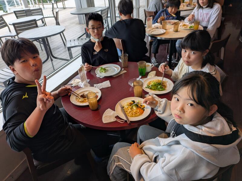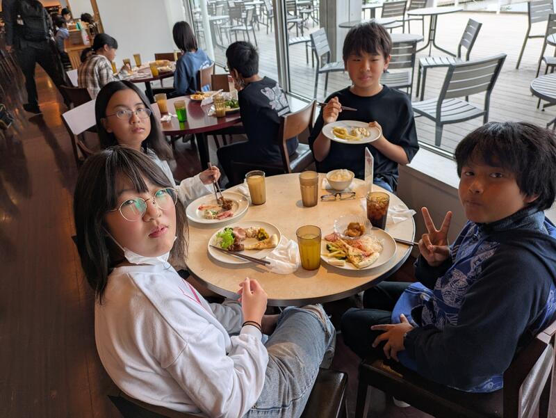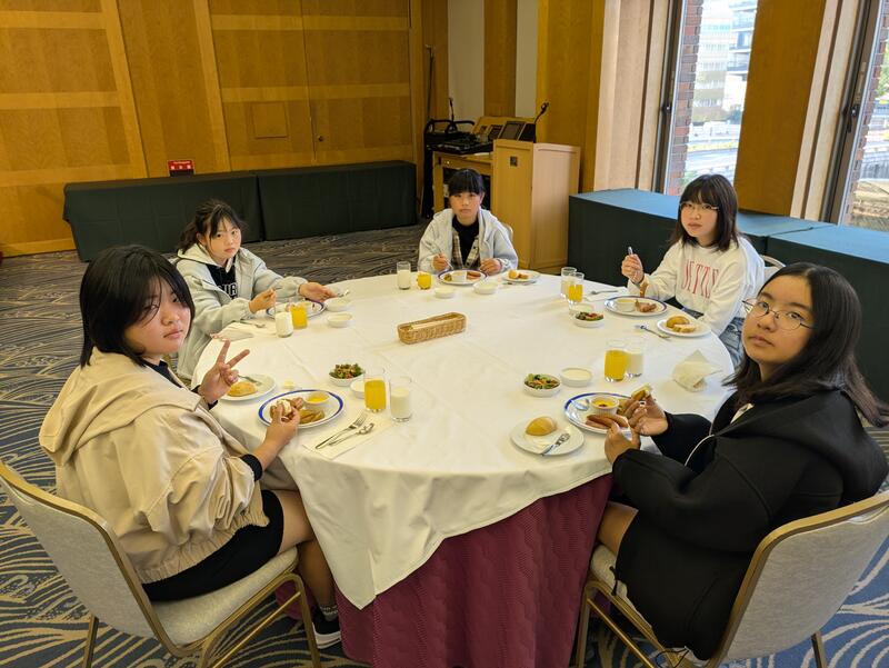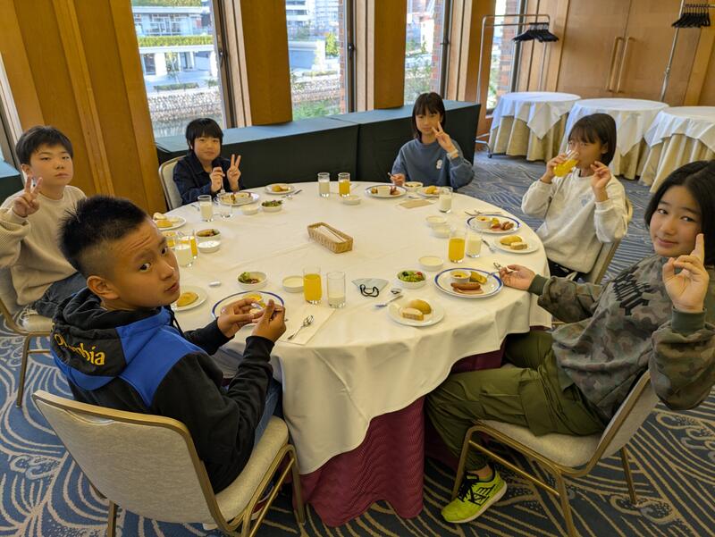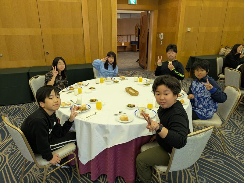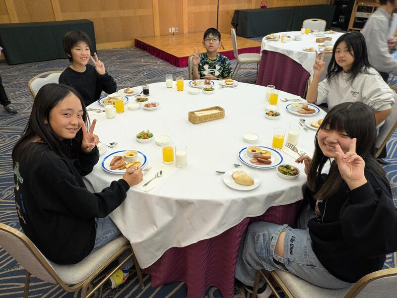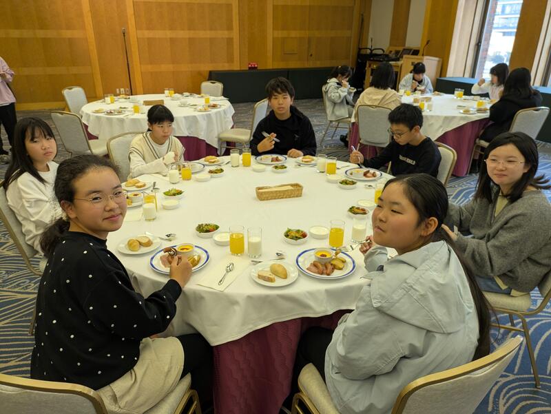 児童は朝ご飯を食べ、ホテルを出発しました。