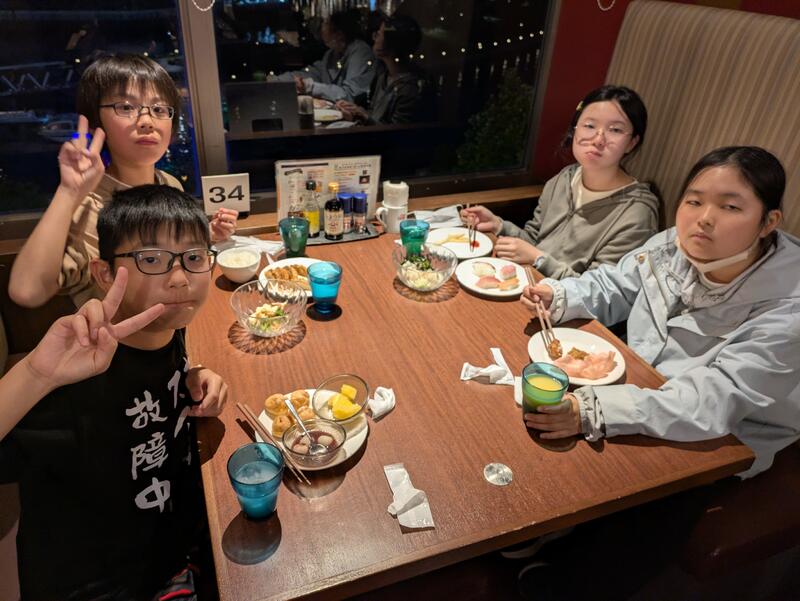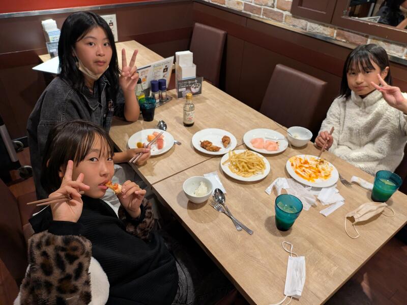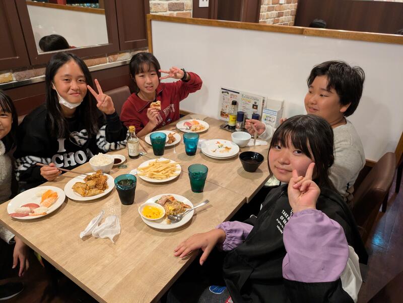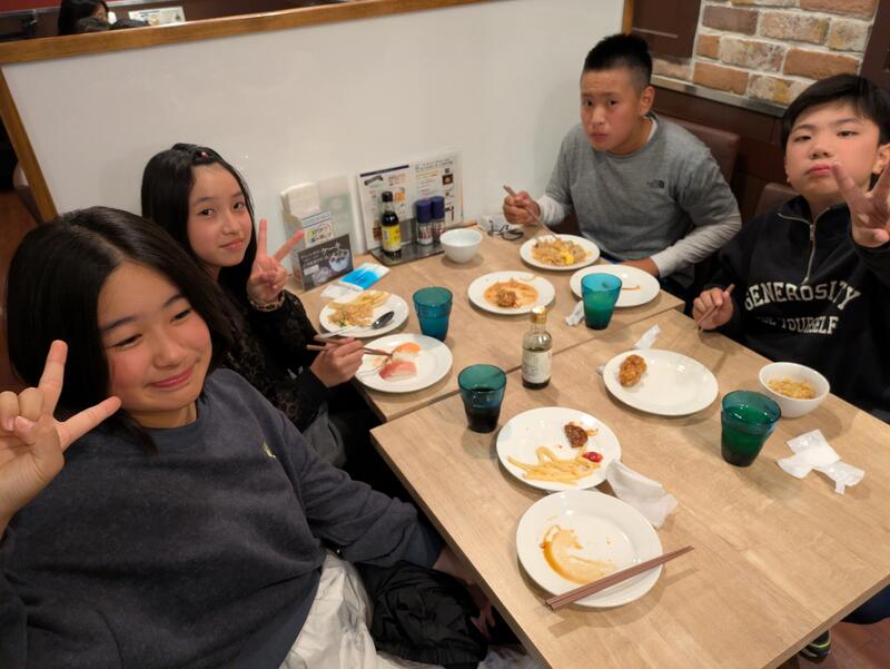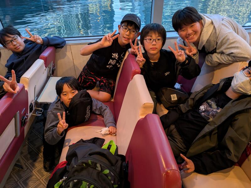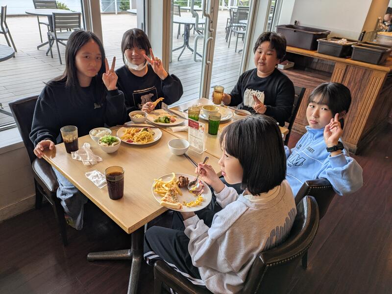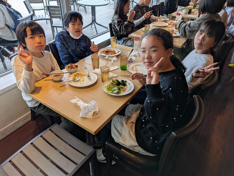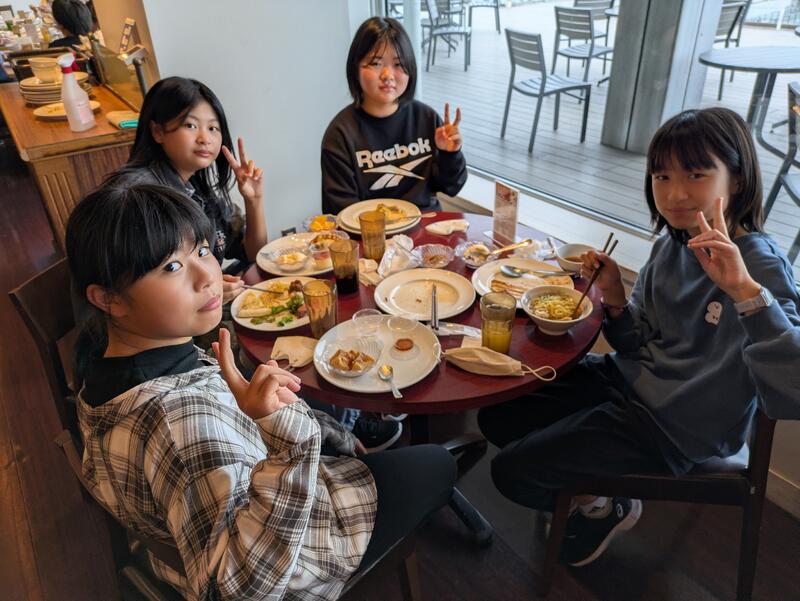 児童は朝ご飯を食べ、ホテルを出発しました。