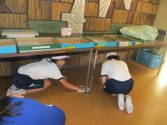 今週は、短縮日課で縦割班の清掃ができないため、トイレや階段などを6年生が清掃しました。どこの清掃場所でも、協力して行っていました。