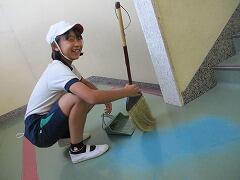 運動会に来て頂く方々や自分達が気持ちよく過ごすことができるようにするために、各クラスで場所を決め、清掃しました。6年生は昇降口と階段を担当しました。すみずみまできれいにしていました!