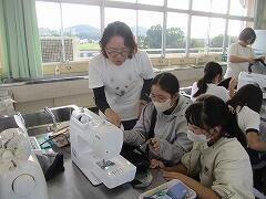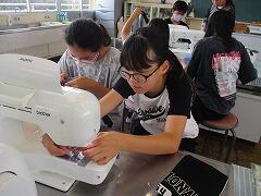 家庭科の学習で、エプロンを作っています。ミシンボランティアの方々にもお手伝い頂き、順調に仕上がっています!
