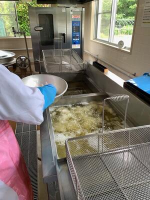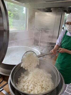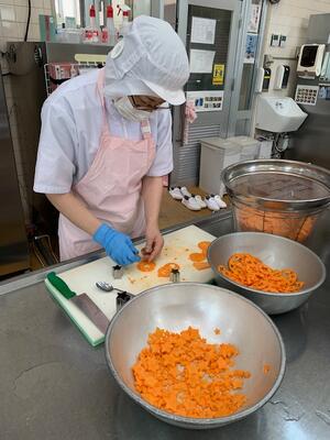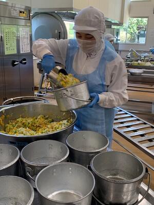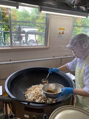 調理員さんがとても丁寧に・手際よく作ってくれています!!ごぼうの香りも食欲をそそります。