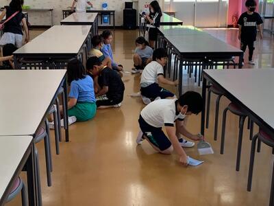 給食の後は、毎日自分たちのテーブル下をお掃除してくれる市貝っ子ですが、今日の3年生は特に念入りにお掃除してくれていました素敵です