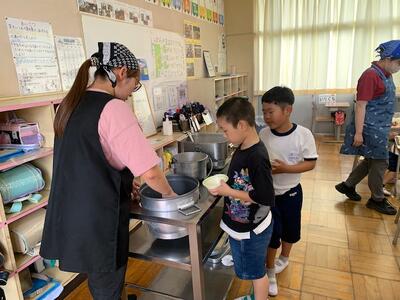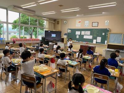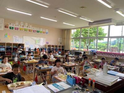 今日は2組の先生が出張で不在でしたが、2組の子供たちも自分たちでしっかりと準備。そして、おかわりもたくさんして、マナーも守って食べていました。