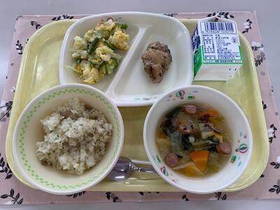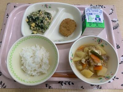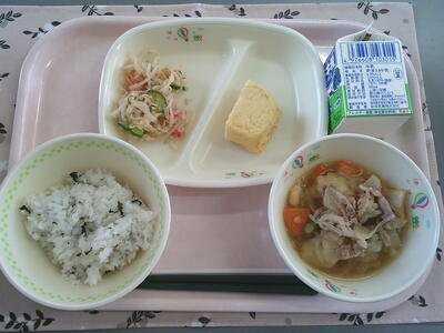 12月になりました。今月の給食目標は「衛生に気を付けて食事をしよう」です。朝夕一段と冷え込むようになりました。気温の変化に体がついていけず体調を崩しやすい時期です。新型コロナ、インフルエンザ、ノロウイルス、かぜなどへの予防をしっかりしましょう。感染症予防の第一の鉄則はせっけんを使ったていねいな手洗いです。外から戻ったとき、そして「いただきます」の前には必ず手を洗いましょう。うがいも忘れずにしましょうね。